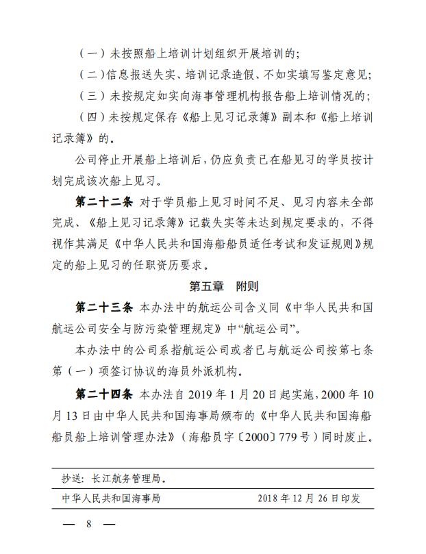 中華人民共和國海事局關(guān)于印發(fā)《中華人民共和國海船船員船上培訓(xùn)管理辦法》的通知