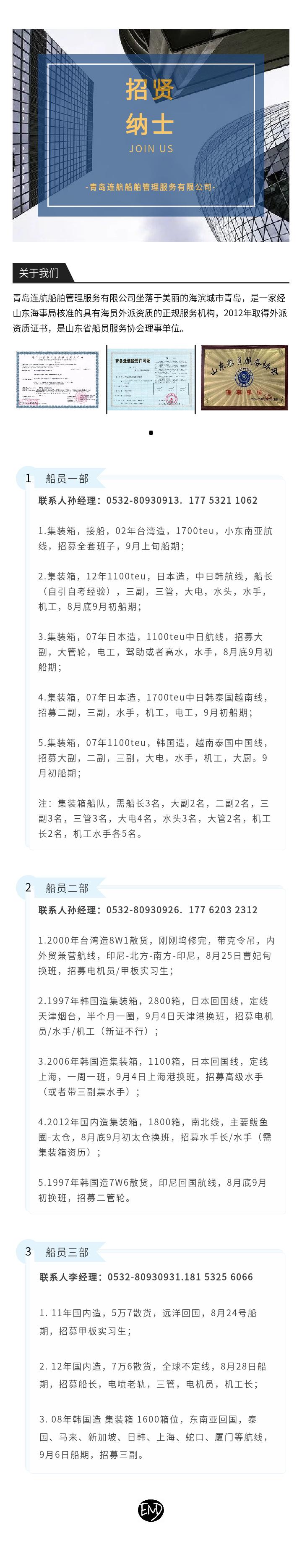 青島連航船舶管理服務(wù)有限公司 版權(quán)所有 魯ICP備18042903號(hào) 魯公網(wǎng)安備 37020302371571號(hào)